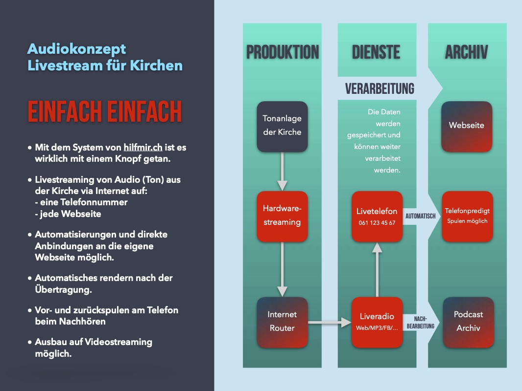 Es verbindet Podcasts, Livestreams, Internetradio und herkömmliche Telekommunikation auf eine geschickte Weise und ermöglicht es, Veranstaltungen, Podiumsdiskussionen, Konzerte uvm. über einen Internetradiokanal in unzählige Haushalte zu bringen.